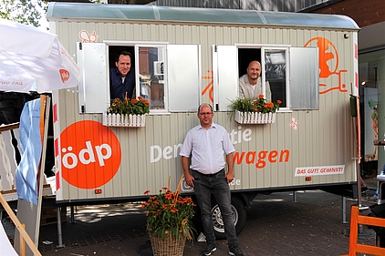 Das Wahlkampfmobil der Ökologisch-Demokratische Partei (ÖDP) machte in der ÖDP-Hochburg Marienborn Station. Der ÖDP-Bauwagen steuert im…